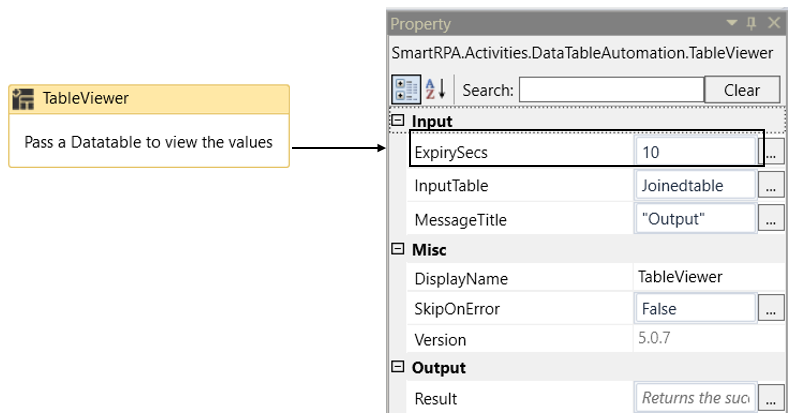 c. Navigating to the “ExpirySecs” from the properties of the “TableViewer” activity.