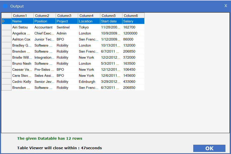 i. Here I am specifying the “Title” as “Output” for the Datatable.