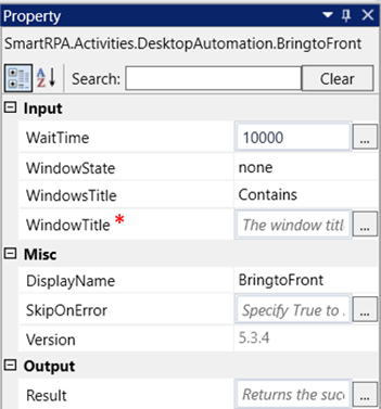 1. Drag and drop the " BringToFront " activity onto the designer pane and set as