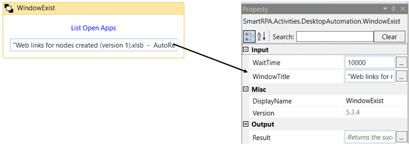 2. Now, execute the workflow to view the “WindowExist” status.