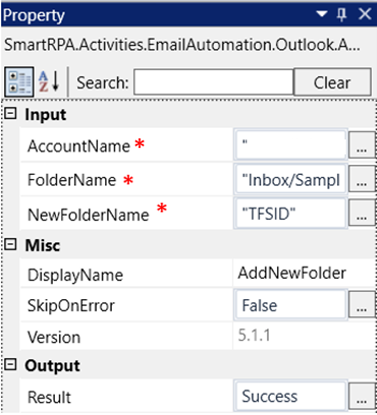 NewFolderName: This specifies the "name" of the folder in which it needs to be created within the specified Outlook account. Only “String” values are accepted. |