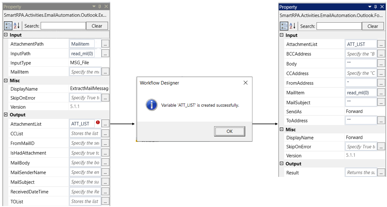 AttachmentList: Indicate the "AttachmentList" (Declared as an output in the "ExtractMailMessage" activity) to include attachments along with the "NewMail."