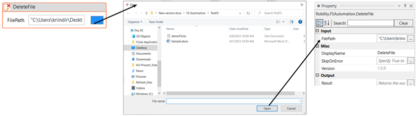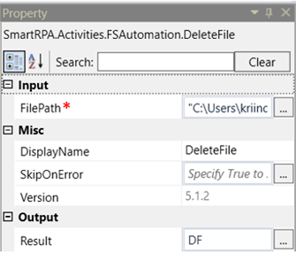 File Path: Specify the path of the file which has to be deleted. It accepts only “String” datatype. |