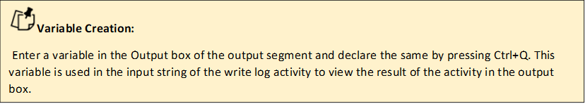 6. Add the variable as “Output” in the writelog to see the path of the system folder and