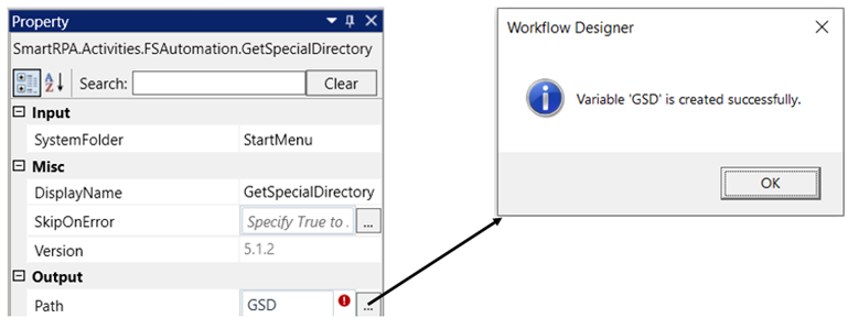 1. Drag and drop a “Get Special Directory” activity from the FS automation feature.