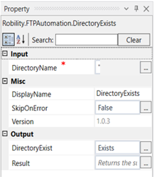 This activity is used to check if a directory exists in the specified path. This activity requires the server’s name, username, and password to proceed with activities in this feature.