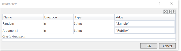 5. In the parameters if there is an input that needs to be given., we need to create an argument here which will be given as the input to the python script. Click on the three dots in the side to enter an argument.
