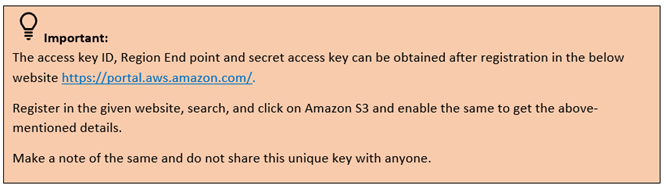 SecretAccessKey: Specify the secret access key provided at the time of registration. |