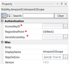Body: This remains empty and auto populates when an activity is dropped into the AmazonS3 scope. |