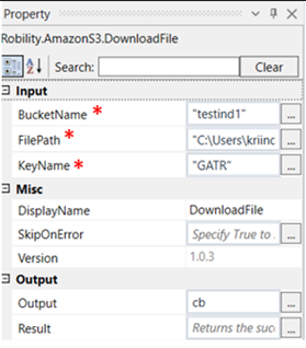 BucketName: Specify the name of the bucket from which the file has to be downloaded. |
