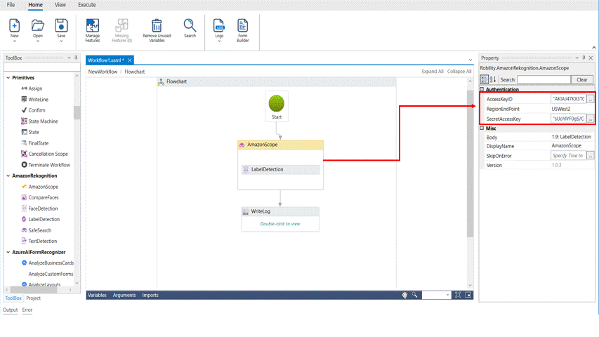 3. Drag and drop a label detection activity inside the amazon scope.