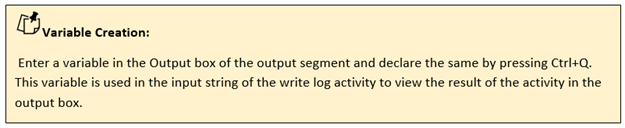 Result: Declare a variable here to validate the activity. It accepts only Boolean value. This is not a mandatory field. |