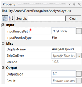 OutputJson: This is not a mandatory field. However, to view the result of the analyzed layout, a variable must be created here, to view the result in an output box. |