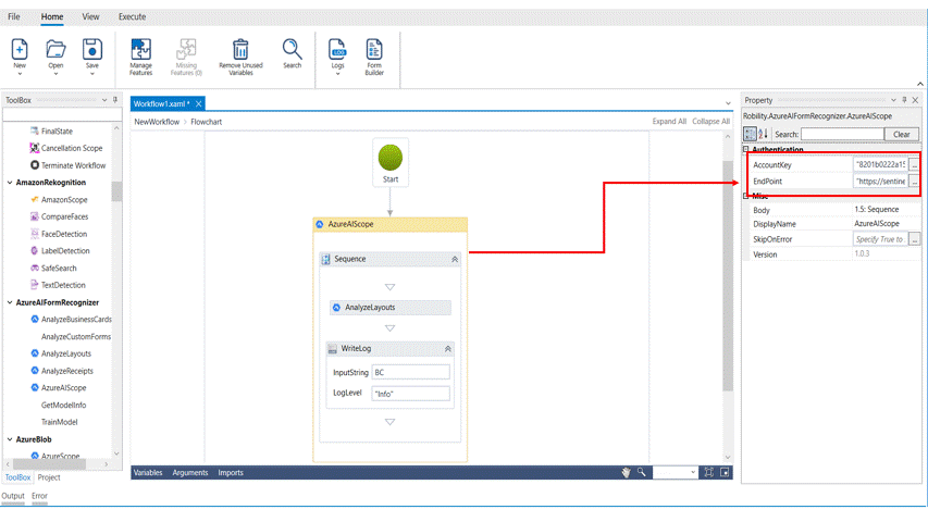 8. Drag and drop a writelog activity below the Azure AI Scope