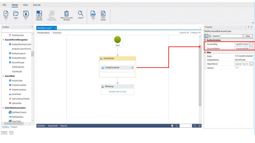 The following example illustrates on how we can use the create container activity to create a container in the Microsoft azure blob storage.