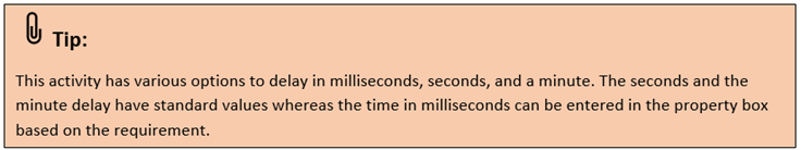 Also, only the Delay in MS(Milliseconds) activity has an option in the property box to increase or decrease the milliseconds value.