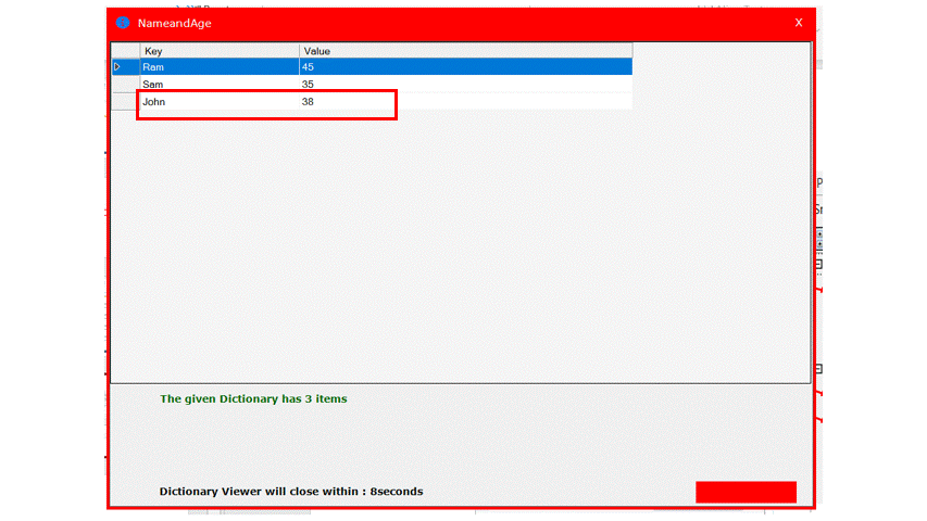 The following activity illustrates on how we can use the set value activity to update the value for a key in the dictionary. Here we are going to use the continuity of the same example that we used in add to dictionary.