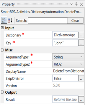 2. Fill the property box with the same details added to the dictionary. Dictionary, ArgumentType1 and ArgumentType2.