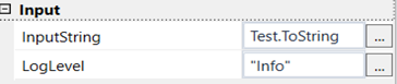 6. Add the variable as “Test.ToString” in the input string of the write log activity.