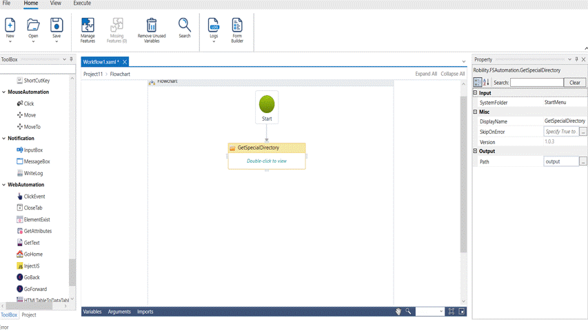 This activity is used to get the directory information when you are required to access an application or a file available in a special directory of a machine. This can be used to get the path of any required folder that we wish to work on.