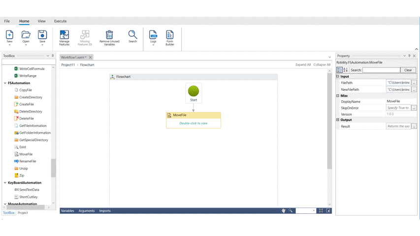 The following activity illustrates on how we can use the move file activity to move a file from one folder to the other.