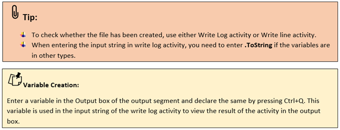 SkipOnError: It specifies whether to continue executing the workflow even if it throws an error. This supports only Boolean value “True or False.” True: Continues to execute the workflow irrespective of any error thrown. False: Stops the workflow if it throws any error |