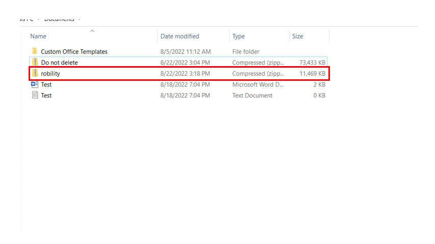 4. In the property tab, ZipFilePath choose the path and file from which the files must be extracted. Add .zip at the end since we are going to extract the files from a zipped folder. E.g., "C:\Users\Documents\robility.zip"
