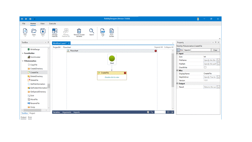2. Drag and drop the Create File activity from FS Automation.