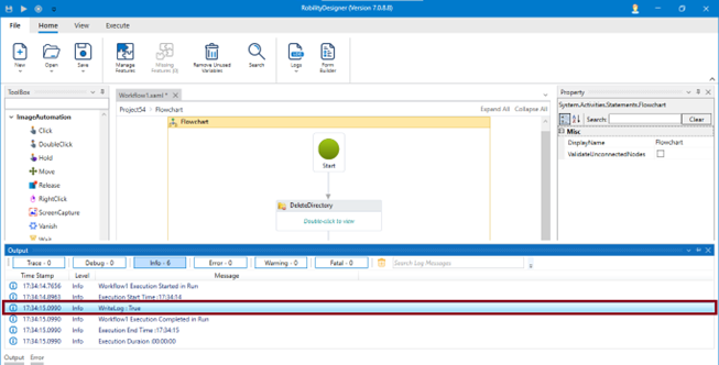 7. Drag and drop Write log activity and connect below the Delete Directory activity.