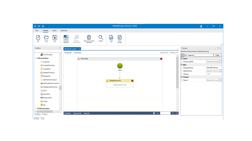 2. Drag and drop the Delete Directory activity from FS Automation.