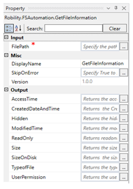 2. Drag and drop the Get File Information activity from FS Automation.