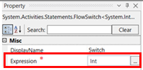In the property box of the FlowSwitch activity enter the same variable in the Expression box that was entered in the variables section