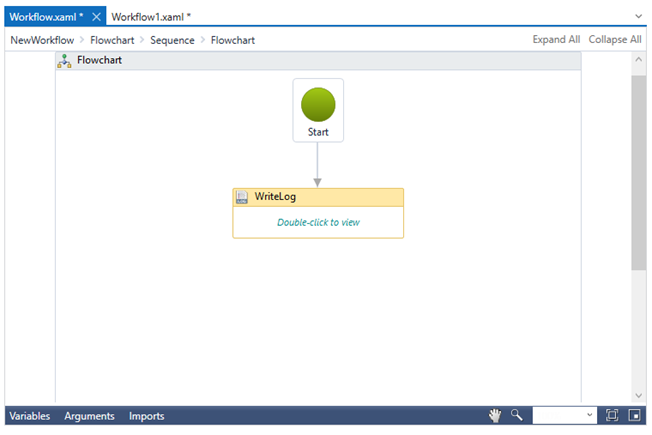 The Flowchart activity is used to create workflows that define and manage complex flow controls. The Flowchart activity specifies a unique StartNode that is executed when the workflow starts and uses a network of linked activities.