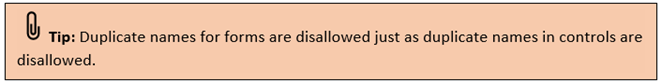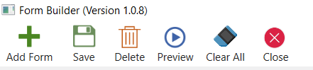 · Delete: Will delete the highlighted controls from the form. If the form is selected, it deletes the form itself. However, it does not allow to delete the default form