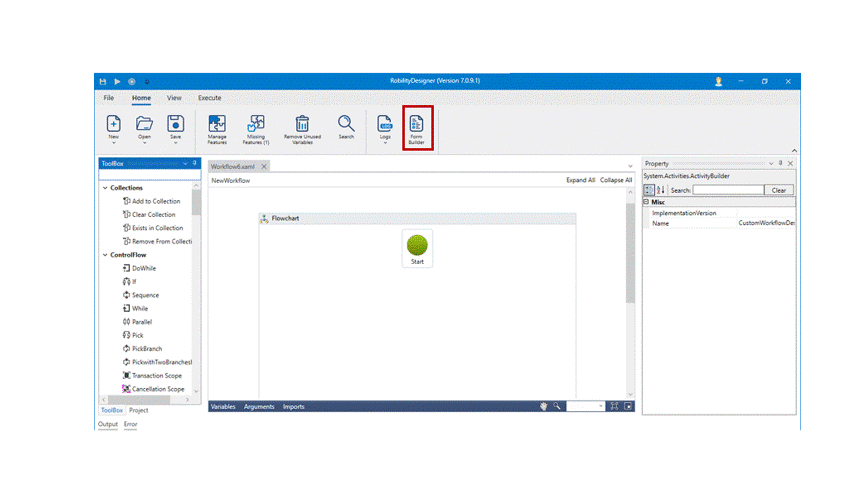 Purposes:1. Form builder facilitates the user to create customizable forms that will help consolidate and enter values during execution of the robot and with the values, decide the sequence of workflows that has to be executed. So, even before storing data, if user can create the forms as per requirement, it would be easy for them to collect or pass information seamlessly.