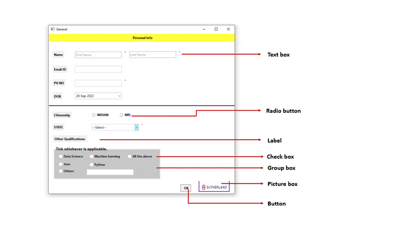 Here we have created a sample form with the following controls.