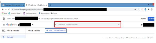 Step 3: Search for “Gmail API” in the “Search for APIs and Services” tab