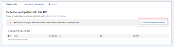 Step 5: Click Credentials tab from the left side panel and click “CONFIGURE CONSENT SCREEN” button.