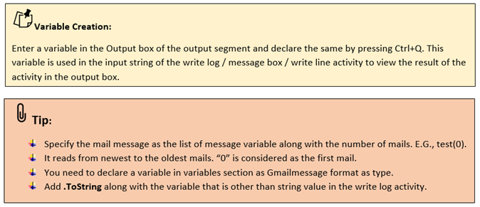 Let’s continue from Read Mail activity example,