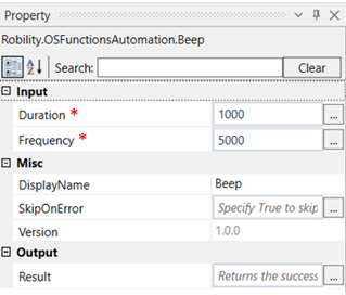 Duration: Specify for how long the beep should be heard. This is given in milliseconds. |