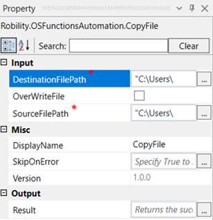 DestinationFilePath: Specify the path where the file has to be copied. |