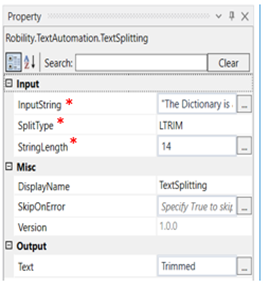 3.In the property box, enter the text from which the data has to be trimmed in the input string.