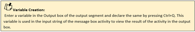 Text: Declare a variable here to view the output in a message box/writelog/writeline. This is not a mandatory field however declare a variable to get the result. |